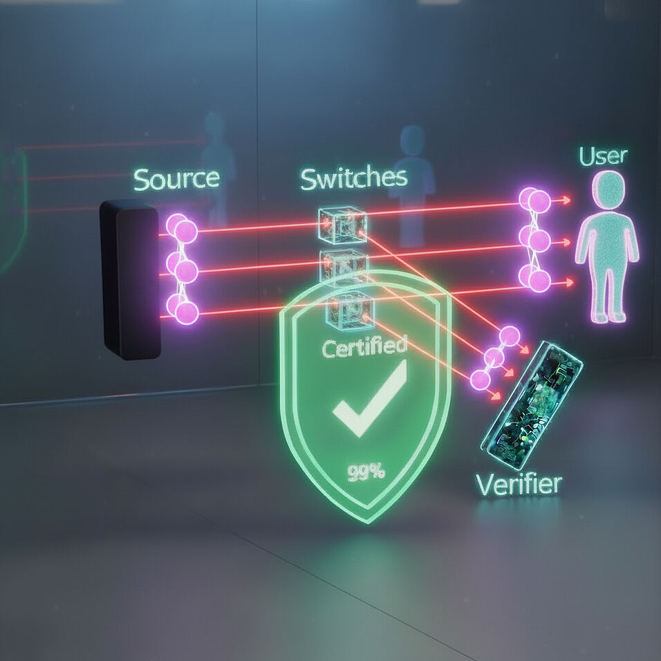 These active optical switches were used to accurately and randomly capture states from the source. This is because, if it can be ensured that the samples are random, the verifier can use statistical methods to certify the user's unmeasured quantum states. High-quality optical switches that can operate as fast as the source generates photons and do not alter the quantum state are essential for this implementation. In this process, only the measured sample is destroyed. The quality of the user's unmeasured states, on the other hand, is certified in real time in a non-destructive manner and released for subsequent quantum operations.